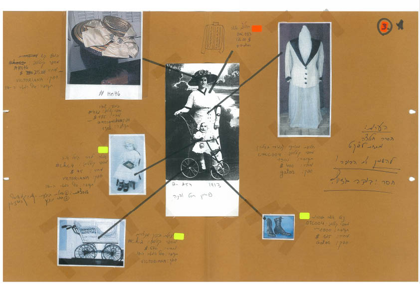 עובדה זו הביאה אותי למסקנה כי עלי למצוא בגדים קיימים, מהתקופה 1882- 1928 , הדומים ככל האפשר לבגדים המקוריים שהוצגו בתמונות ששימשו לבניית הסצנות השונות.