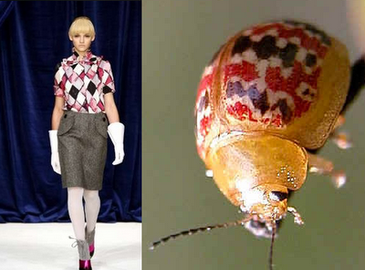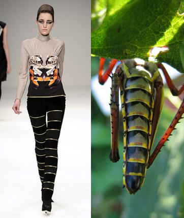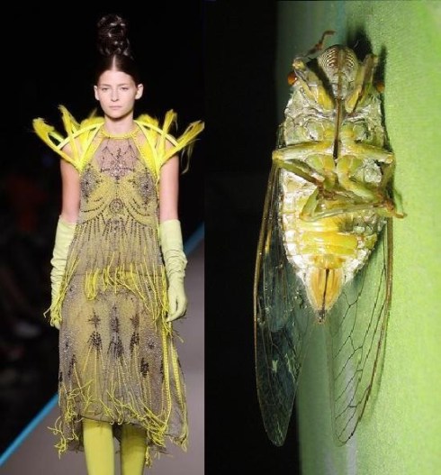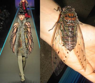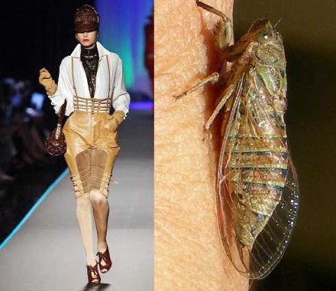 כדי לנטרל את התיעוב מן הג'וקים ( לא. לא תיקן. זאת מילה יותר מדי תיקנית עבור ג'וק) חיפשתי את הקשר שלהם לאופנה ותתפלאו… באופנה הם נראים הרבה יותר טוב…. אז הנה כמה דוגמאות של חרקים מפרת משה רבנו ועד ציקדה ולצידן יצירות האופנה המופלאות שנוצרו בהשראתן…