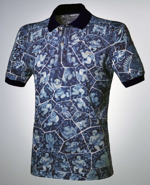 האמן בחר להשתמש בחרסינה סינית מתקופת הקאנגקסי (Kangxi ) של שושלת קינג ( Qing ) מהמאות השבע-עשרה והשמונה עשרה בצבעי כחול-לבן בעבור חולצות ה'פולו' המודפסות.