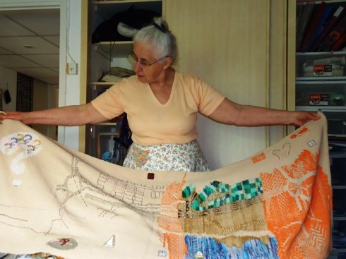 הנול בחדר העבודה של מרים ועליו יצירה לא גמורה