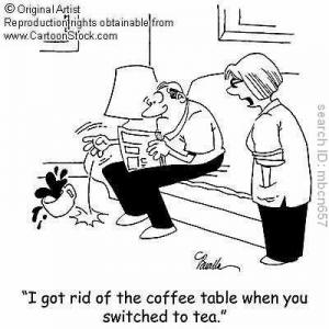משום מה, על אף העובדה שתה הוא המשקה השני בעולם בהיקף תפוצתו (אחרי מים) דווקא המונח ' ספר שולחן קפה' נכנס ללקסיקון שלנו , שלא לדבר על ההזמנה האינטימית 'תעלה אלי לקפה' שיש לה פרשנות מקובלת שקפה הוא לא תמיד חלק ממנה. אז, הנה באותו ענין, קריקטורה לסיום.