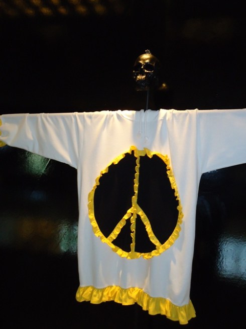 אין זה מפתיע שפאלילו אוהב במיוחד את הצבע השחור ובהשראתו נצבעו כל הקירות שמאחורי הבגדים בצבע שחור, מה שגורם למבקר למקד את מבטו בבגד, ולבגד להיבלע בחלקו על ידי הקיר. הצבעים העליזים- מטעים. לא הסמיילים הגדולים המפוזרים על הבגדים, לא סמלי השלום ואפילו לא דמויות הקומיקס הגרוטסקיות מצליחים לעורר בצופה בדל חיוך או בת צחוק. "צוחק מי שצוחק אחרון" זה מה שאומרים לי דחלילי העץ הגדולים עם הגולגלות המעוטרות.