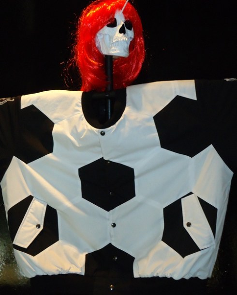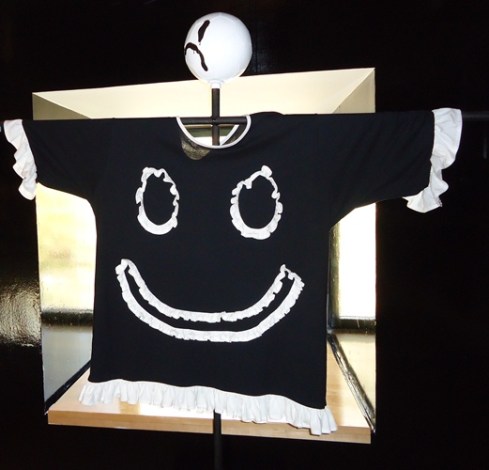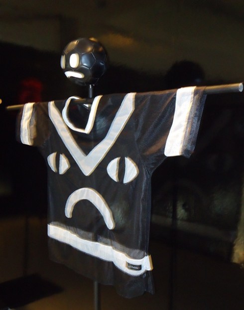 התערוכה המרשימה המוצגת בחלל הכניסה של בית העיר מורכבת מבגדים ענקיים, שכמעט כולם גזורים בגזרת טי אחידה, והם מוצגים על גבי דחלילים מעץ. לדחלילים יש גולגלות ולגולגלות יש שיער צבוע בתסרוקת נשית. לפעמים יש להם כדורים מעוטרים בכתמי צבע במקום גולגלות וההחלפה בין השניים מרמזת שאין הבדל גדול בין גלגולת אנושית לכדורגל. הבגדים הגדולים הם גרפיים מאוד ויש בהם איזה ניקיון המאפיין עיצוב פיני, שמזכיר במידת מה את בדי הדקורציה של "מרימקו" משנות השבעים של המאה שעברה.