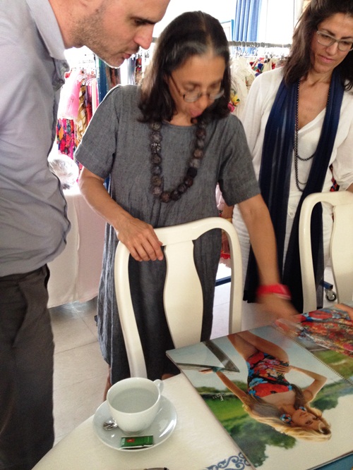 24.10.2012– גלית גאון ויריב ברנבלום מגיעים לביקור בביתה של גב' גוטליב ומופתעים מכמות הדגמים ומהמבחר הענק של בגדי ים וחוף, שנמצאים שם. גלית מקבלת החלטה מהירה: תערוכת המחווה לגב' גוטליב תתקיים בגלריה העליונה, שהיא הגלריה הגדולה. מה שאומר שנוכל להכניס יותר דגמים לתערוכה , וכמובן שעכשיו צריך מיון נוסף. הזמן הולך ומתקצר וכמות החומר גדלה כל הזמן. כשאני לא ממיינת דגמים בביתה של גב' גוטליב- אני שקועה עד צוואר בכתיבת הטקסטים לתערוכה. סדר היום שלי מורכב מ-80% עבודה על התערוכה ו-20% לכל השאר. למזלי, קרן בן-חורין מסייעת לי באיסוף החומר. מזל שהיא יכולה לעבוד מרחוק ולשלוח לי את החומר מניו-יורק ומזל ש'סינדי', הסופה האיומה, אילצה את קרן להישאר שבוע שלם בבית…בכל ביקור בבית גוטליב, אני רואה איך גב' גוטליב הולכת ונחלשת והקשר שלה עם הסביבה הולך ומצטמצם.
