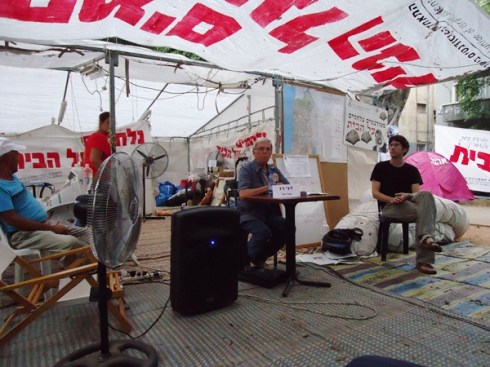 דני בעיצומה של ההרצאה במאהל הסטודנטים